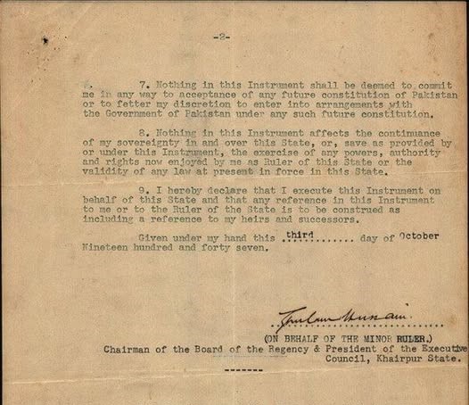 After the partition of British India in 1947, Khairpur signed a Standstill Agreement with Pakistan, affirming cooperation while retaining limited autonomy. However, in line with Pakistan’s One Unit Scheme, the state was officially merged into Pakistan on October 3, 1955. Today, Khairpur is celebrated for its historic forts, Sufi shrines, educational institutions like Shah Abdul Latif University, and its unique contribution to Sindh's cultural heritage.